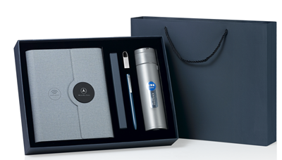 四、双面无线充电记事本礼盒套装 无线移动电源置入记事本中.随手一放即可充电概念,充电、记录两不误.创意收纳,手机支架功能.自带输入输出线(苹果,安卓,Type-c三用数据线,礼盒装更显得有仪式感。