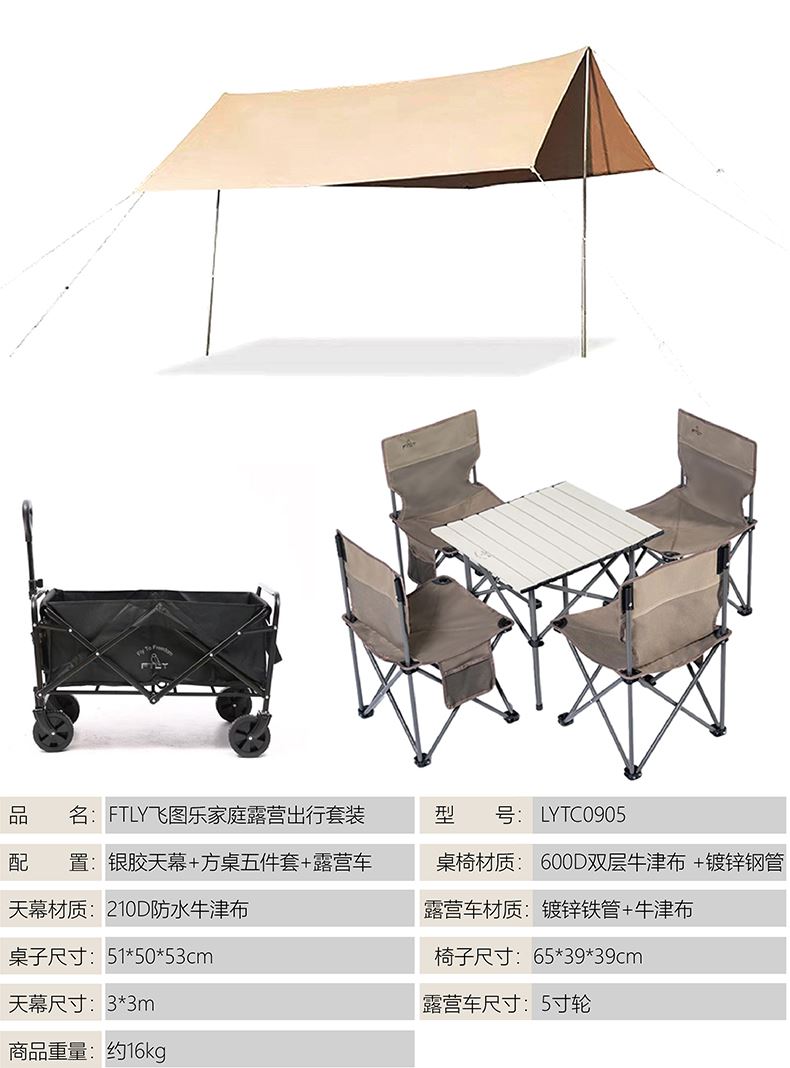 FTLY飞图乐家庭露营出行套装(天幕+桌椅五件套+露营车)