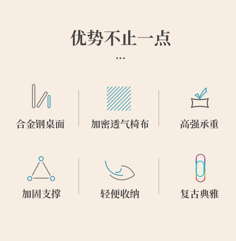 材质:600D双层牛津布 +镀锌钢管 商品颜色:茶松棕 商品规格:三件套(一桌两椅)/五件套(一桌四椅) 中桌尺寸:90*60*45cm 大桌尺寸:120*60*45cm 椅子尺寸:68*44*44cm 商品重量:7kg/12kg 需要三件套的联系我司业务人员
