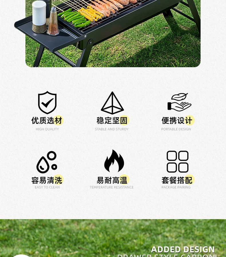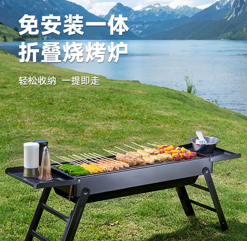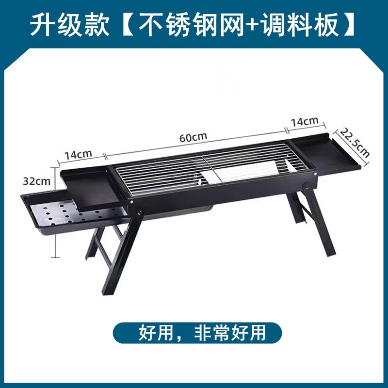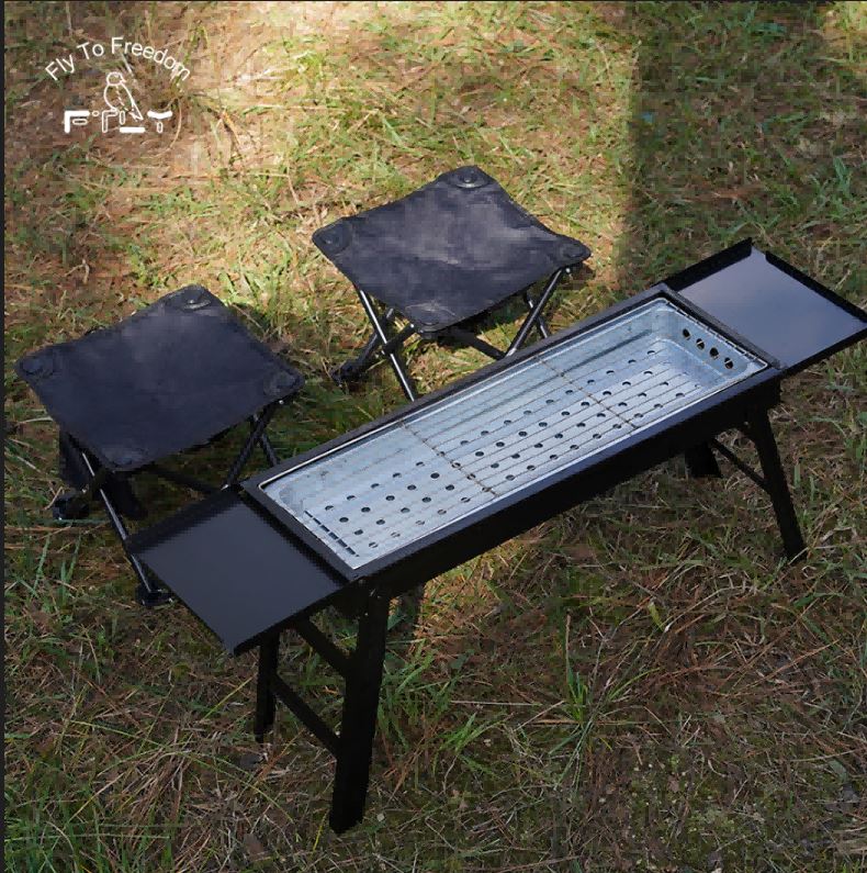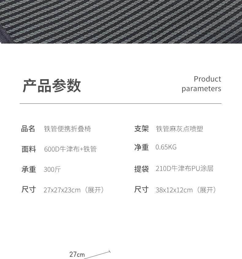 折叠凳材质:600D牛津布 +镀锌钢管 烧烤架材质:冷轧铁+不锈钢烤网 凳子尺寸:27*27*23cm 烧烤架尺寸:88*32*22.5cm 商品重量:约4.5kg