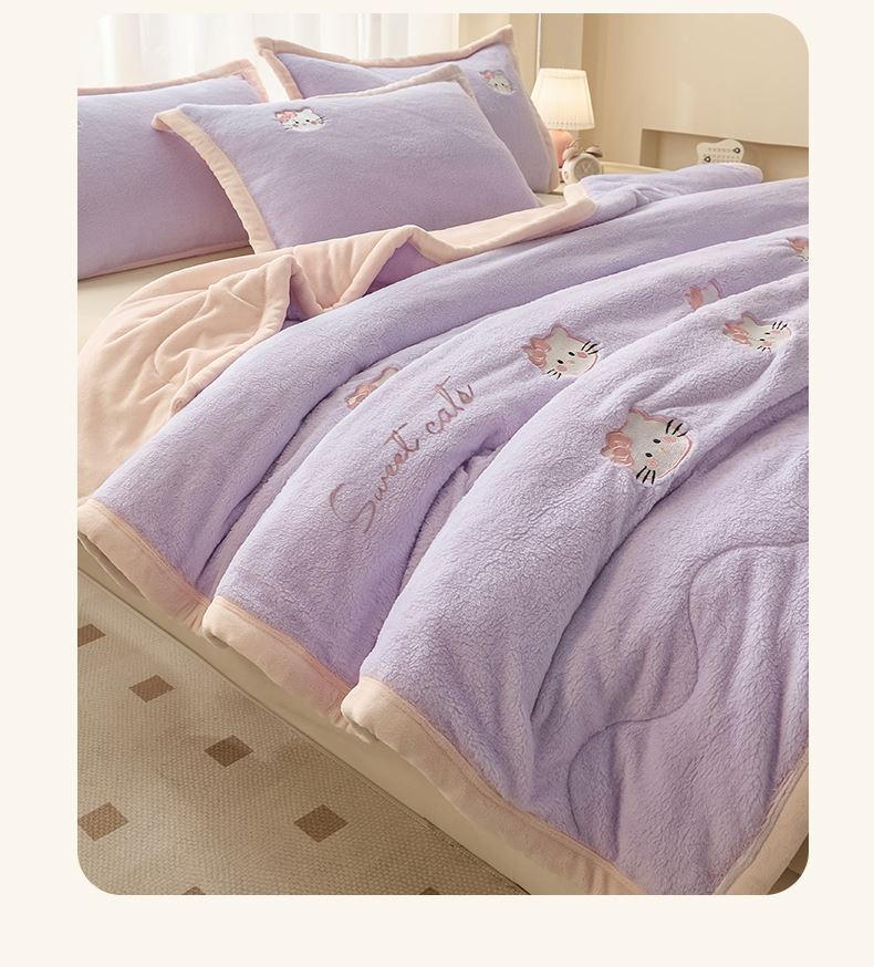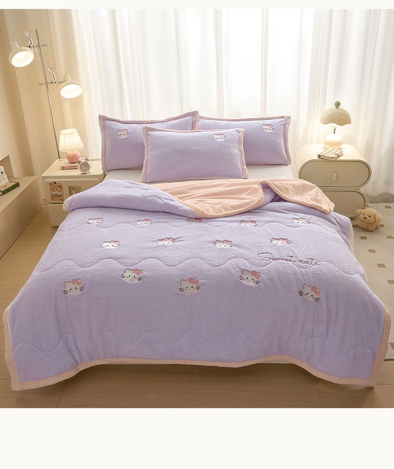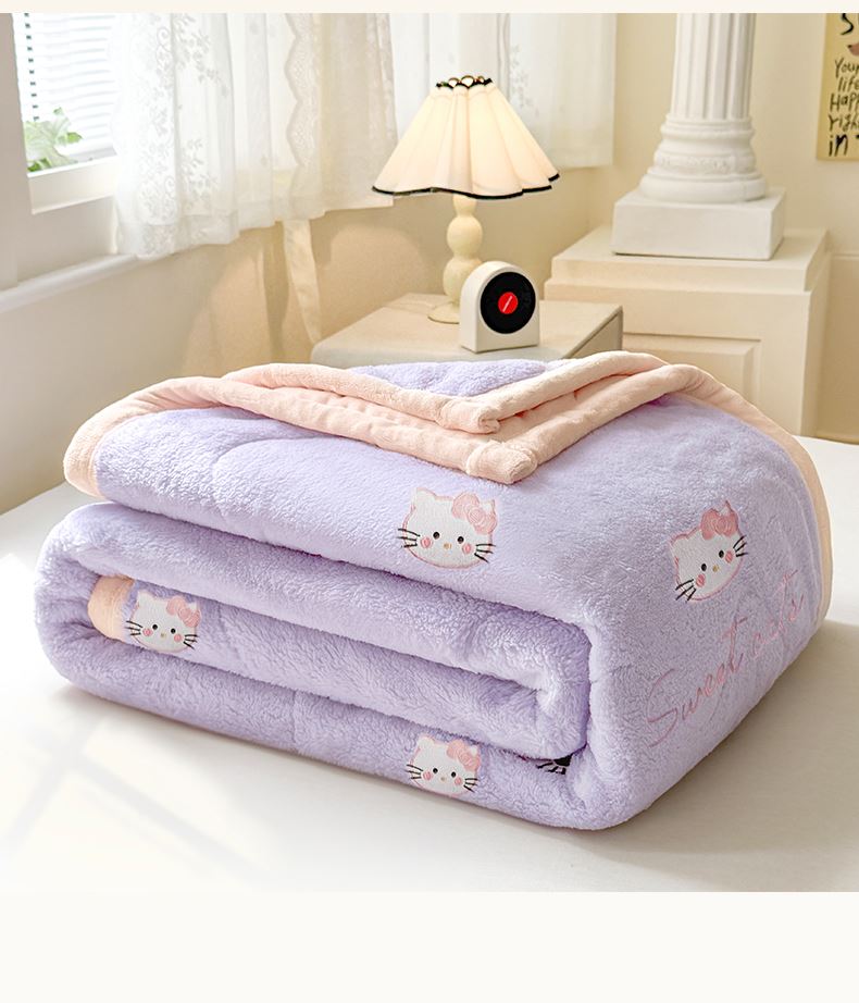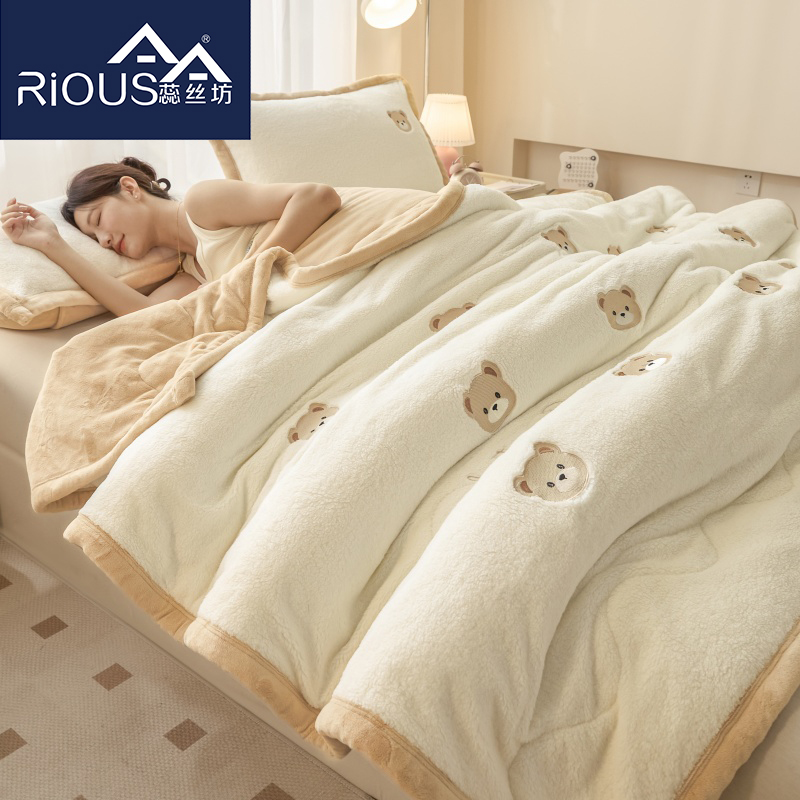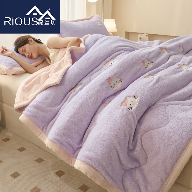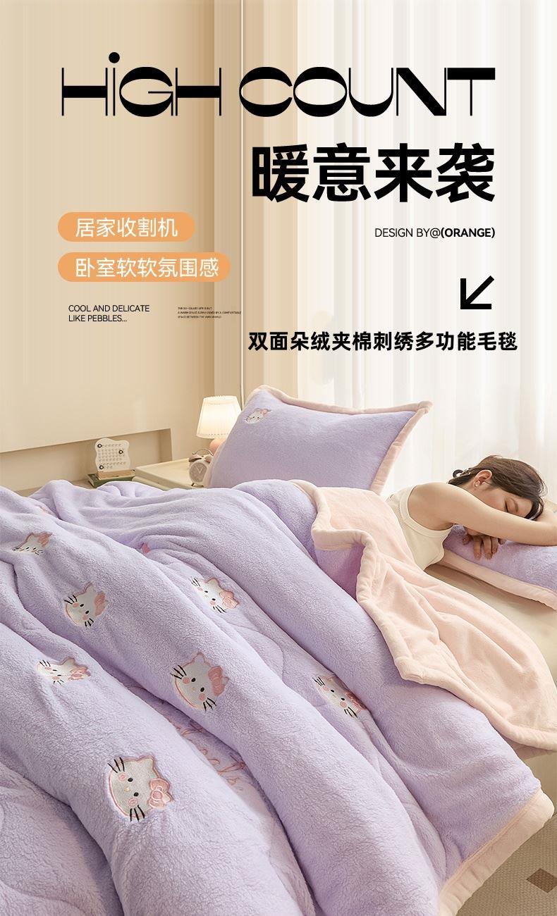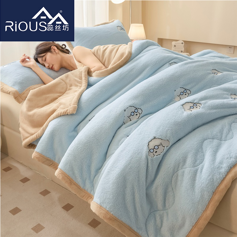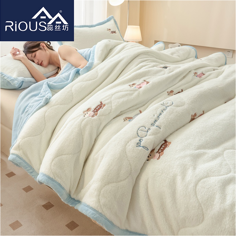 蕊丝坊家纺新款双面朵绒夹棉刺绣多功能毛毯150*200cm