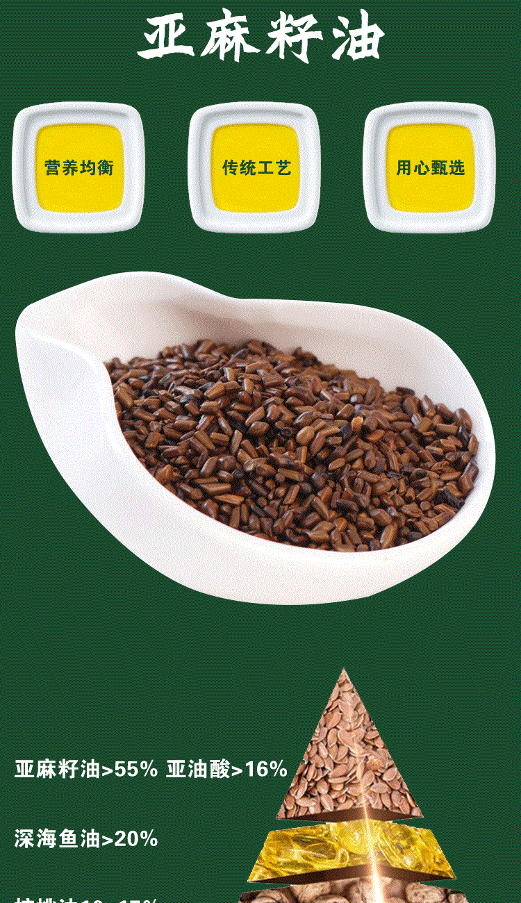 配置:500ml/瓶 简介:每一滴油,都来自无污染农场的有机亚麻籽。我们坚持从源头杜绝农药与化肥,确保您获得的,是纯净、安全与自然风味。 玻璃瓶装,持久锁鲜,鲜如现榨,头道油,更营养。 营养美味,全家共享,富含α-亚麻酸高达52%-70%,天然营养,老少皆宜。 甄选俄罗斯优质亚麻籽,俄罗斯处于高寒高纬度,拥有丰富的亚麻籽资源好油源自好原料,好原料成就好油。