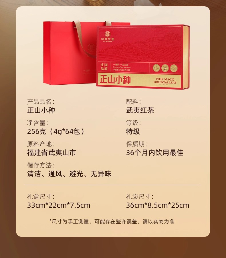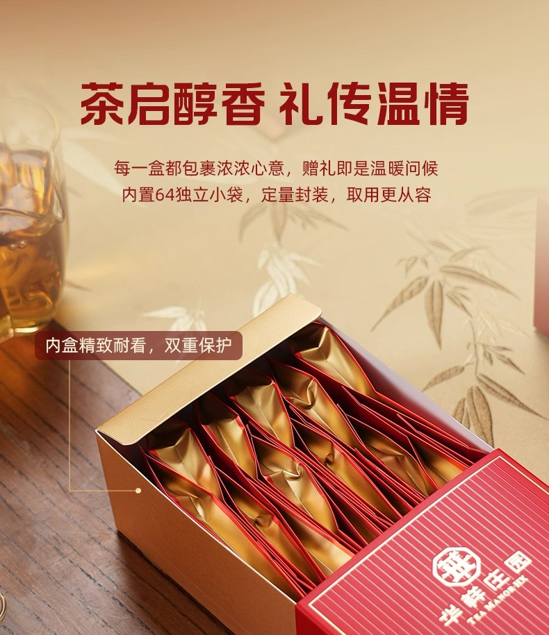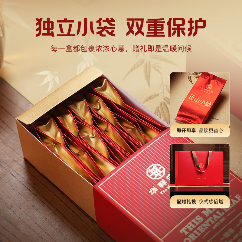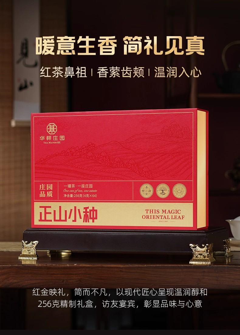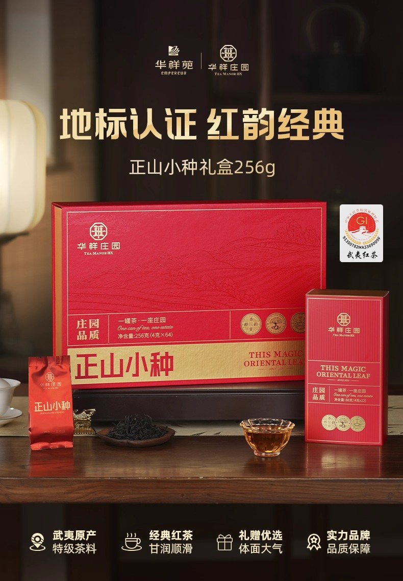华祥苑全国线下4300+实体门店 #76国贵宾喝的茶 #国礼茶 #中国高duan社交用茶第yi品pai #茶行业门店数量4300家全国第yi 地标认证 红韵经典 正山小种礼盒256g(4g*64包) 暖意生香 简礼见真 红茶鼻祖 | 香萦齿颊 | 温润入心 红金映礼,简而不凡,以现代匠心呈现温润醇和 256克精致礼盒,访友宴宾,彰显品味与心意。 茶启醇香 礼传温情 每一盒都包裹浓浓心意,赠礼即是温暖问候 内置64独立小袋,定量封装,取用更从容。 《品质特征》茶干乌润 条索细秀,紧结完整 茶汤甘爽 橙黄透亮,颊齿留香 鲜活叶底 呈古铜色,柔软耐泡 温润茶礼 一盒满足多种场景。