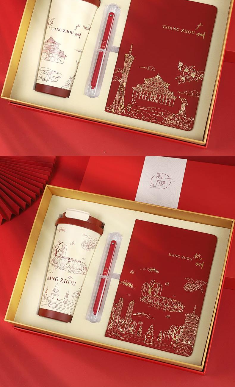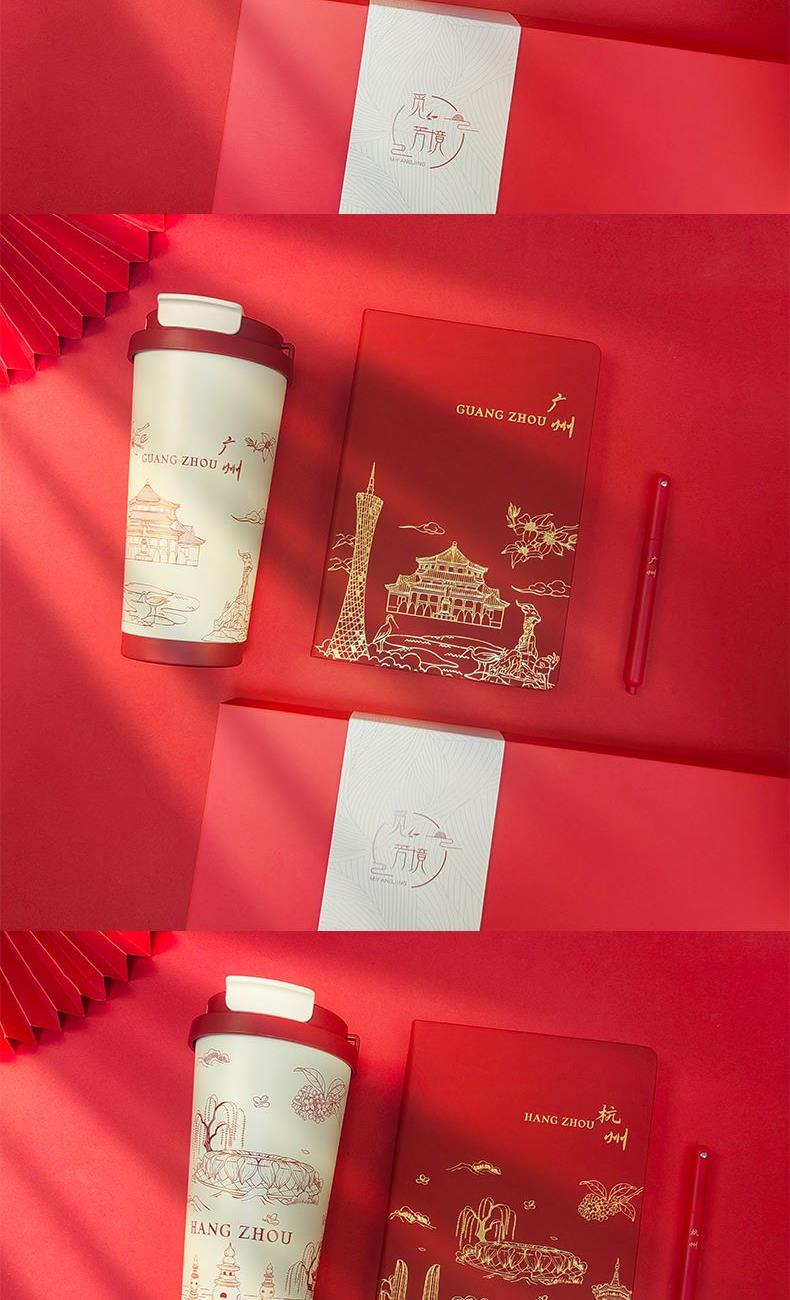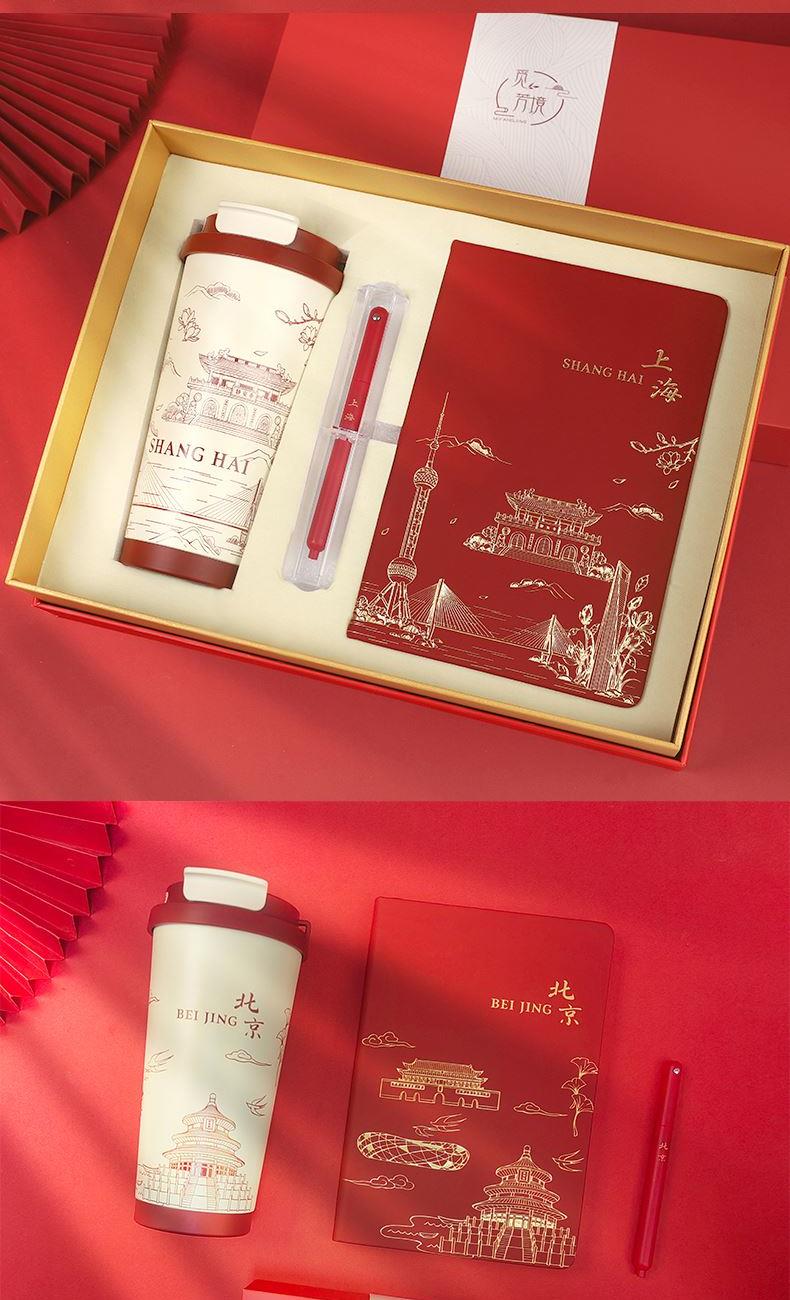 觅芳境城市系列酒红(咖啡杯+签字笔+A5笔记本)