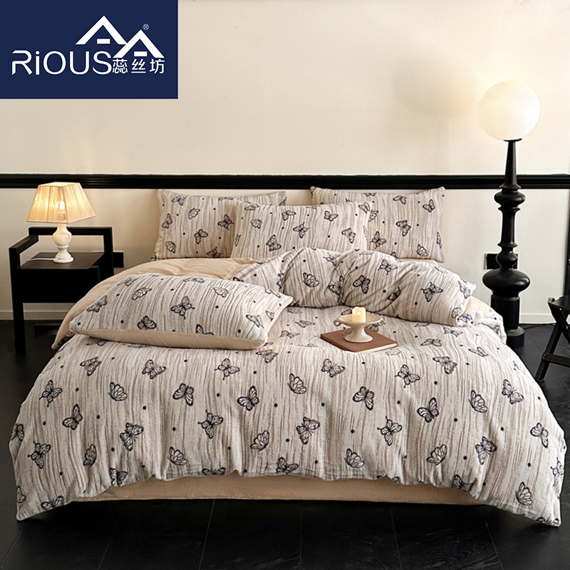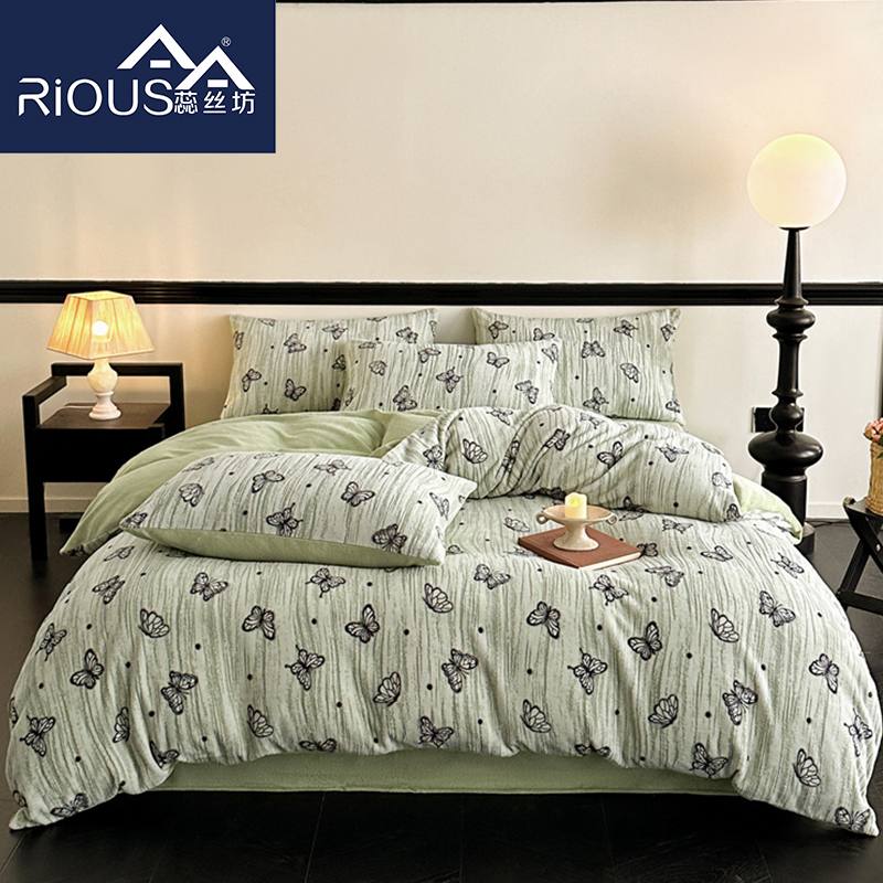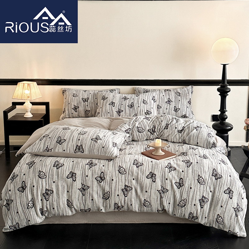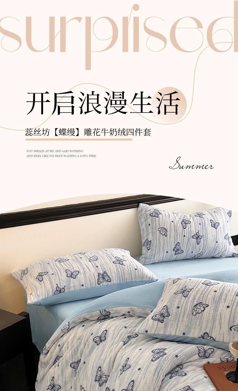 蕊丝坊家纺蝶缦雕花牛奶绒四件套