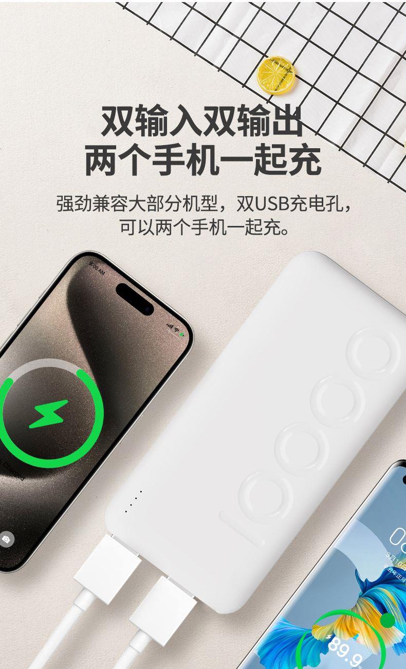 2.幻响--7Ppro移动电源 已通过CCC认证,安全保证; 10000毫安时超能聚合物安全电芯 ; Type-C+双USB+Micorusb双入双出快充端口; 多重保护电路,超高性价比 ,纯白ABS材质,手感细腻圆润;颜值时代,超薄机身,轻巧便携 ,可以带上飞机的移动电源;