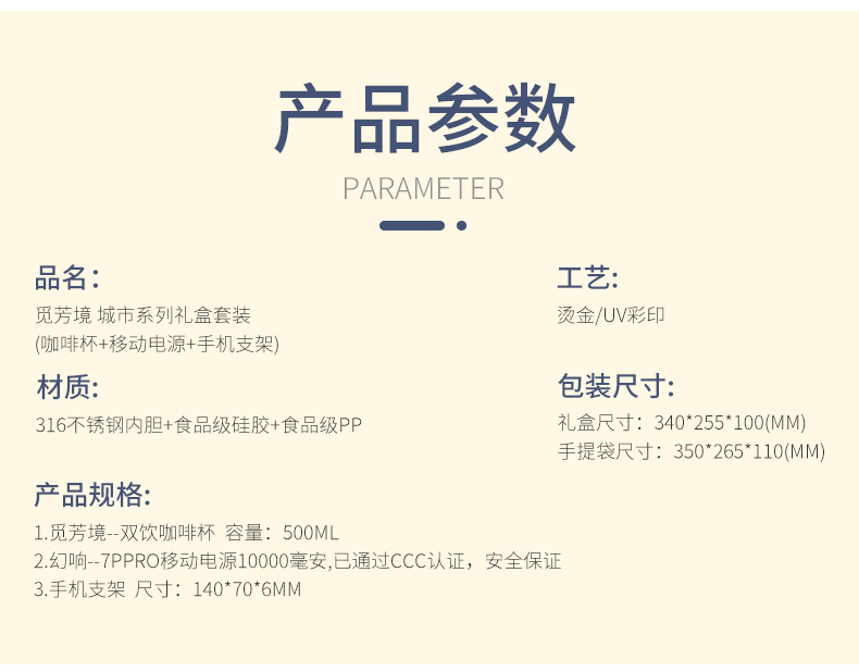 觅芳境城市系列(咖啡杯+移动电源+手机支架)