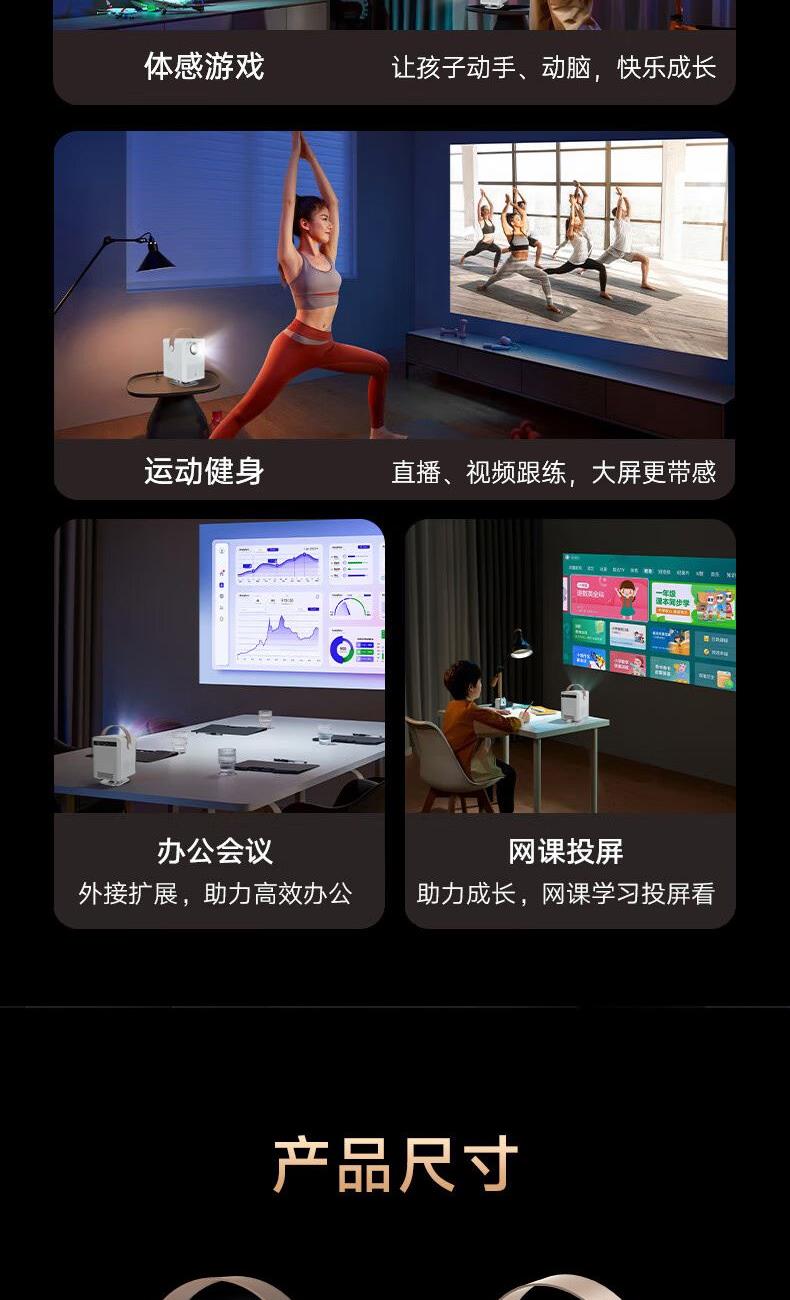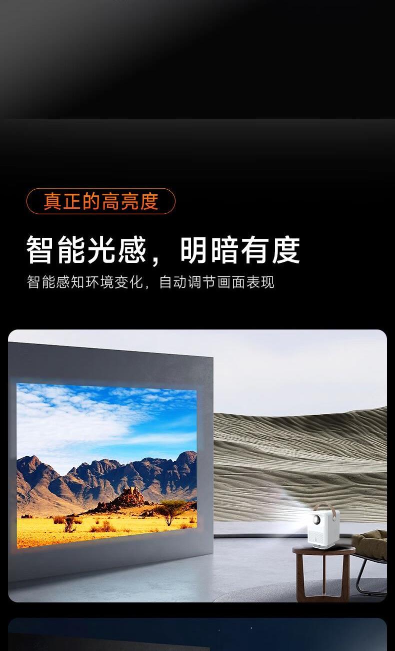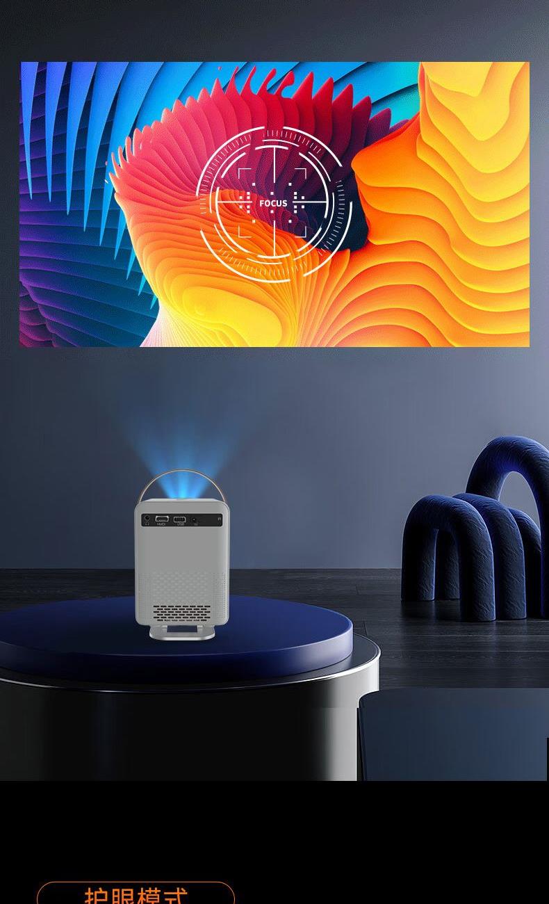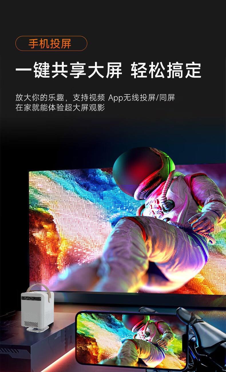 型 号 :TY02 颜 色 :白色 扬声器: 5W 系统版本:安卓语音版 蓝 牙:5.0 投影技术:2.6“LCD显示 投影比:16:9 支持高分辨率:1920*1080P 梯形矫正:支持 亮度: 200ANSI 流明 对比度:1000:1 投影尺寸:40-100英寸 对焦:电动对焦 输入电压:100V-240V(±10%) 毛重:1150g 产品尺寸:115*95*135mm 一箱 :12/件 Ai智能语音控制系统,老人孩子都可操作 支持苹果安卓手机同屏/投屏,内置安卓系统海量影片可在线观看,便携设计,携带无负担,支持1080高清播放,内置独立音箱,多种设备链接,手机/平板/U盘/移动硬盘/网络盒子等,漫反射原理,呵护眼睛健康