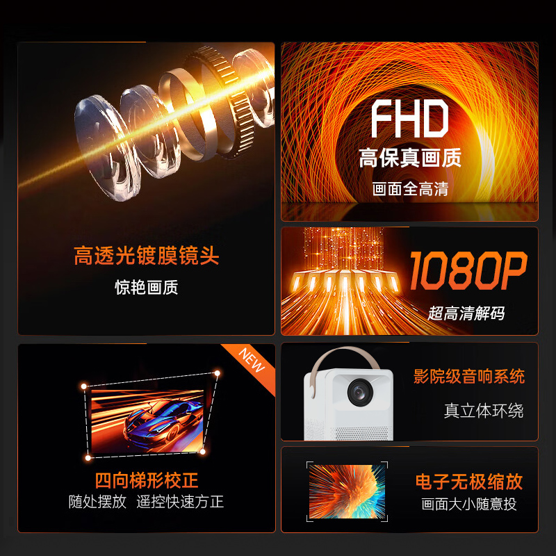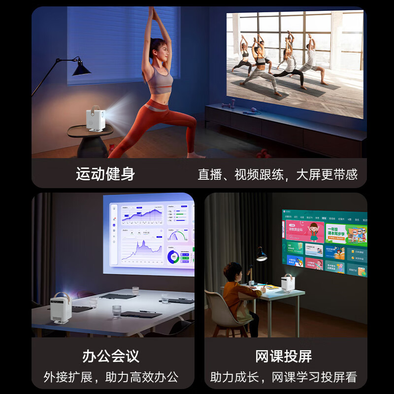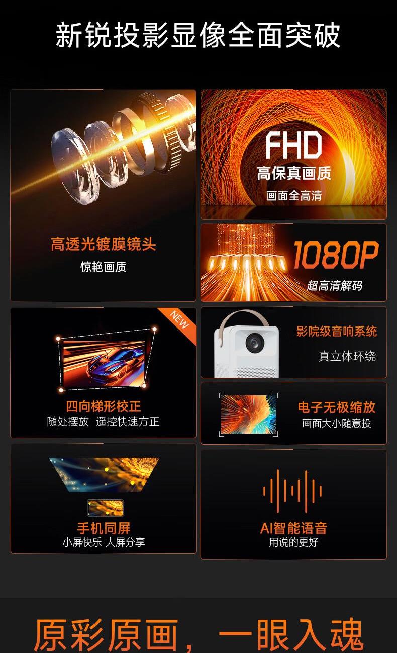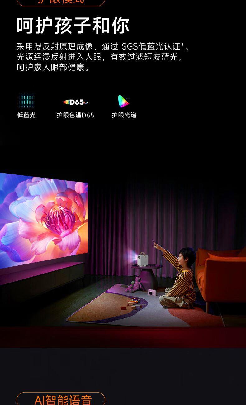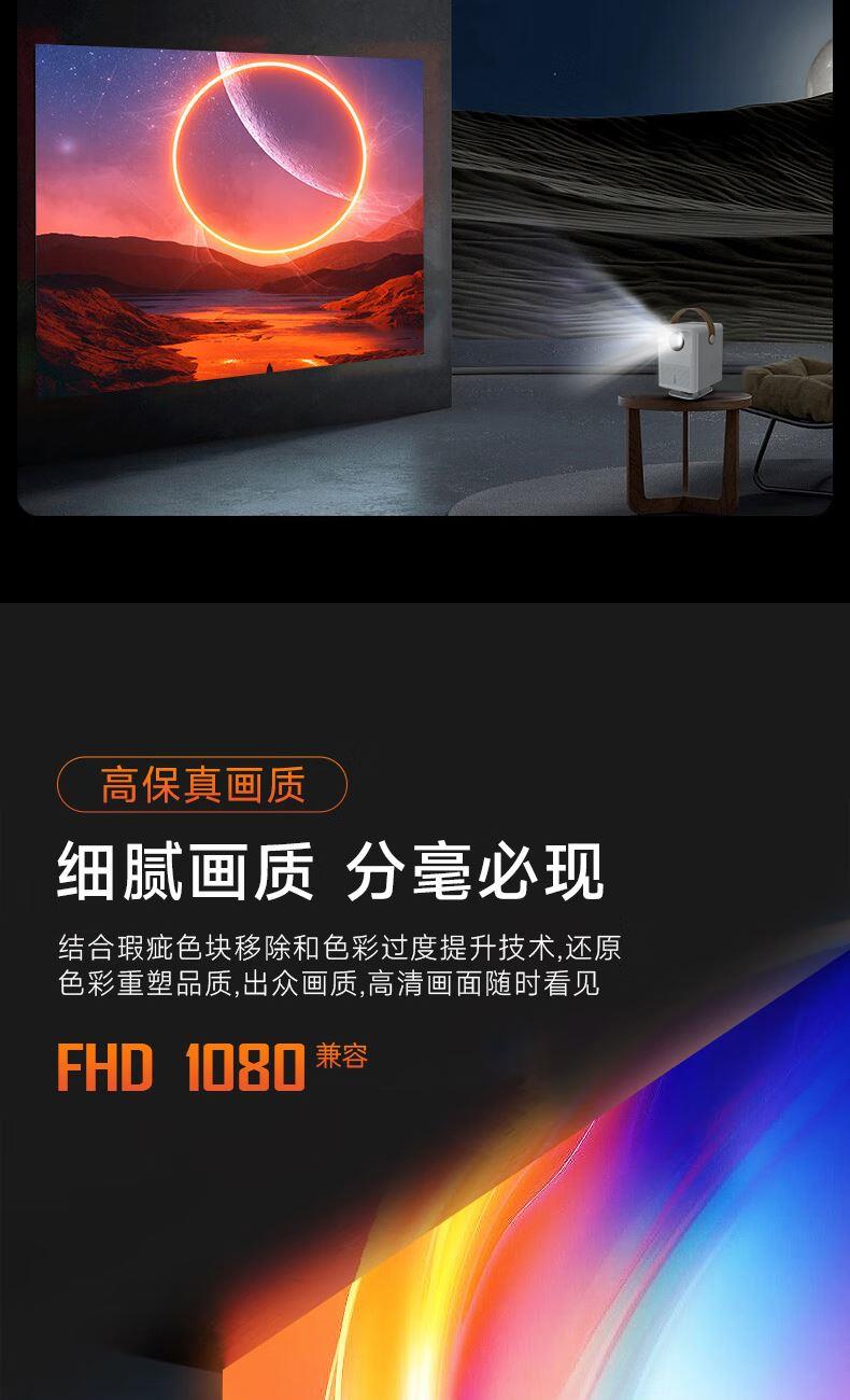 型 号 :TY02 颜 色 :白色 扬声器: 5W 系统版本:安卓语音版 蓝 牙:5.0 投影技术:2.6“LCD显示 投影比:16:9 支持高分辨率:1920*1080P 梯形矫正:支持 亮度: 200ANSI 流明 对比度:1000:1 投影尺寸:40-100英寸 对焦:电动对焦 输入电压:100V-240V(±10%) 毛重:1150g 产品尺寸:115*95*135mm 一箱 :12/件 Ai智能语音控制系统,老人孩子都可操作 支持苹果安卓手机同屏/投屏,内置安卓系统海量影片可在线观看,便携设计,携带无负担,支持1080高清播放,内置独立音箱,多种设备链接,手机/平板/U盘/移动硬盘/网络盒子等,漫反射原理,呵护眼睛健康