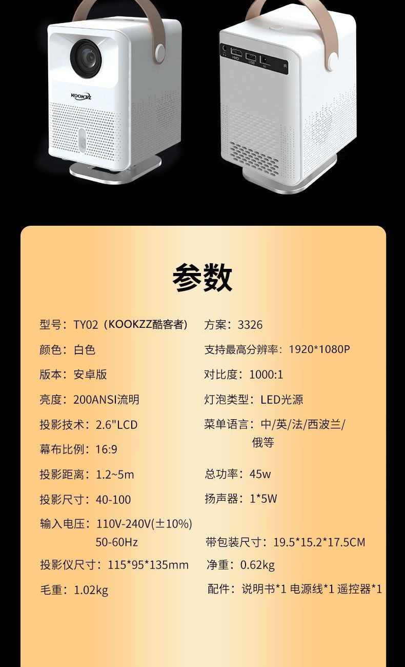 KOOKZZ酷客者无线便携投影仪TY02 KOOKZZ酷客者无线便携投影仪TY02