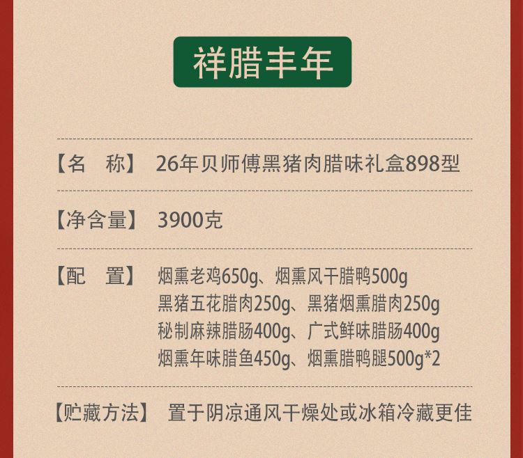 26年贝师傅黑猪肉腊味礼盒898型-祥腊丰年